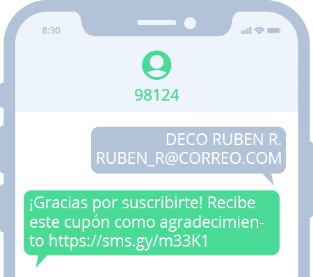 - Haz que se registren mediante formularios o palabras claves para recibir cupones y ofertas exclusivas para generar anticipación y, de paso, aumentar tu lista de suscriptores.