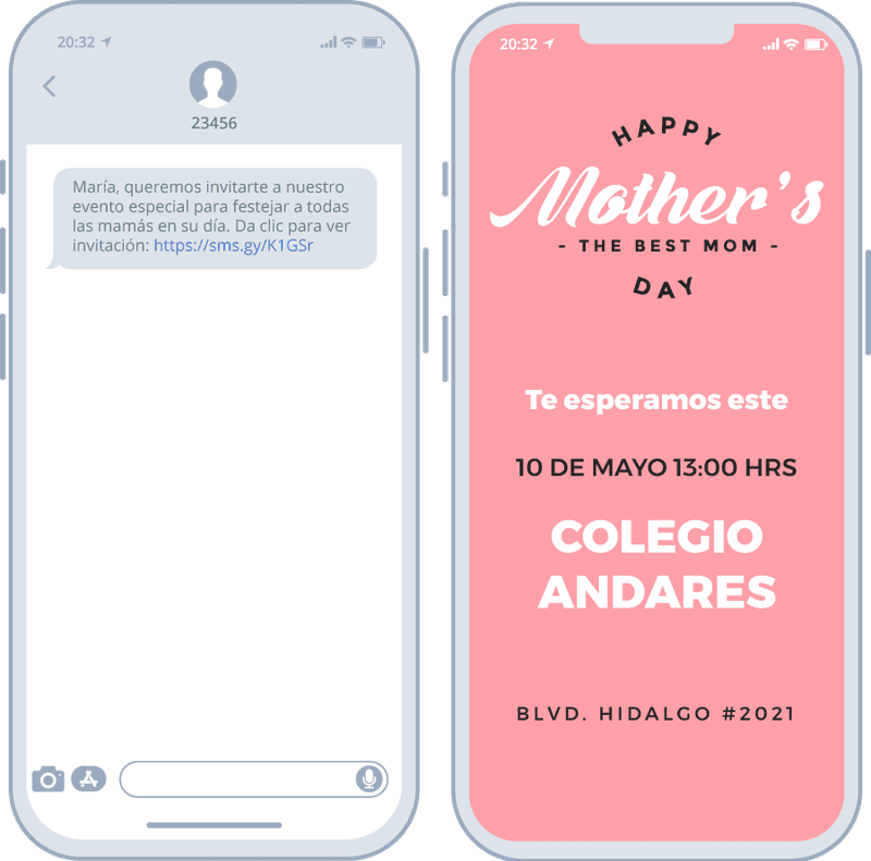 Finalmente, otra forma muy creativa de enviar SMS para el Día de la Madre es enviando invitaciones para eventos para celebrar el 10 de mayo.